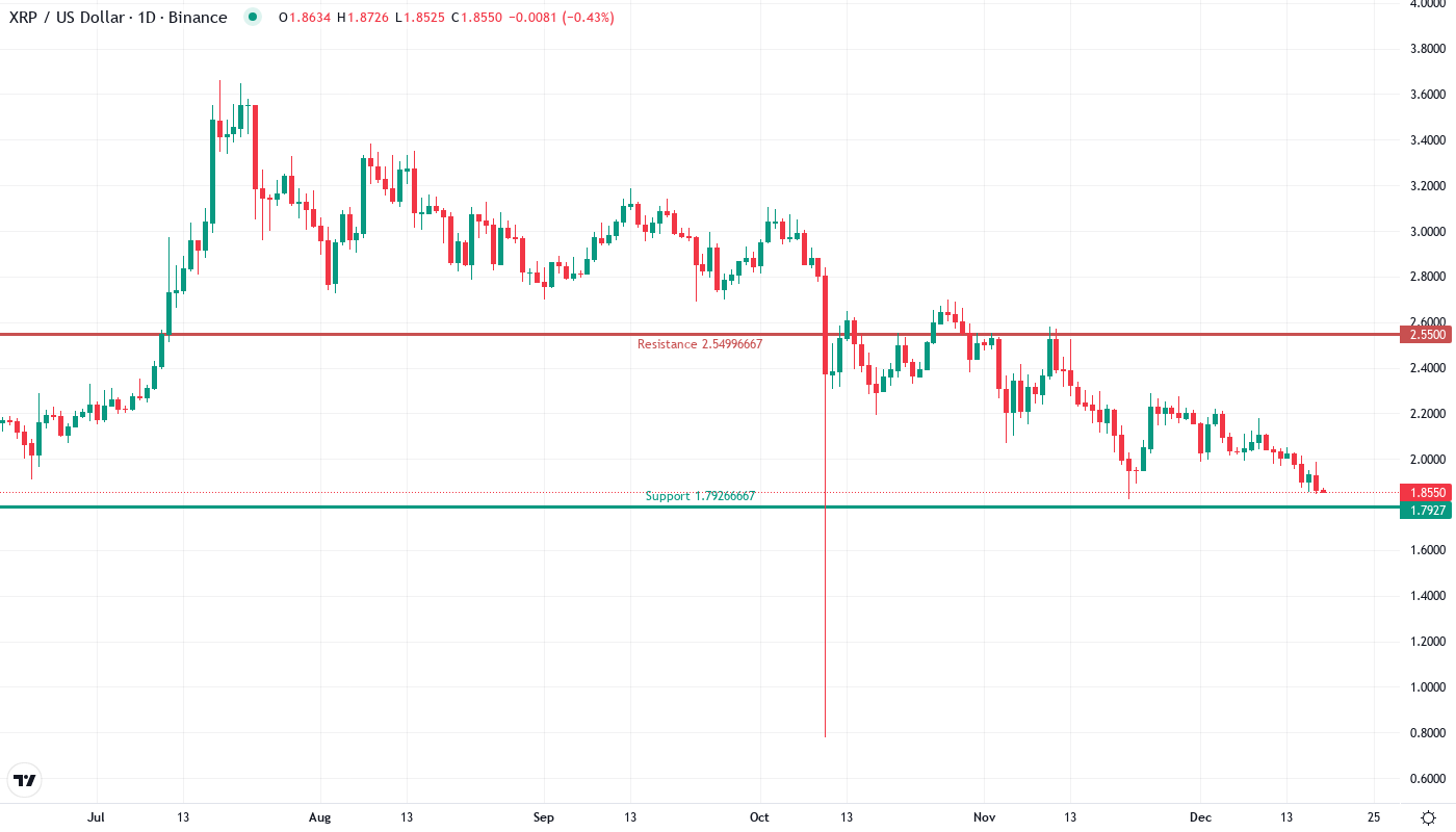 Considering all current factors, a breather in the brutal $0.90 breakdown seems like a healthy pause before the final leg of this bull run gets underway. Should persistent selling pressure force XRP below $1.79 in the coming days, key levels of support to lean on are $1.51, $1.26, and $1.09. Needing to rebuild a base of higher highs and lows, a close above $2.02 will confirm a temporary low has been established.