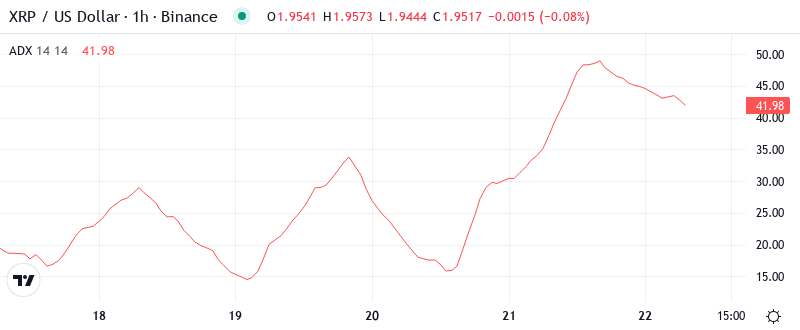 The ADX reading is an extreme measure of directional movement suggesting that sellers are becoming overzealous in their defense of XRP price peaks and are willing to push lower/higher in order to force capitulation. Conversely, profit taking also reaches a level of extremes where further declines/advances attract a new wave of buying/selling.